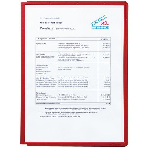 Tükröződésgátló bevonattal és tömör profilozott kerettel ellátott zseb a kerület mentén. Dokumentumok közvetlen másolása vagy szkennelése a zseben keresztül. A dokumentumok számos manipuláció során védettek.