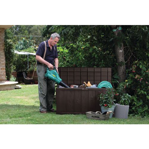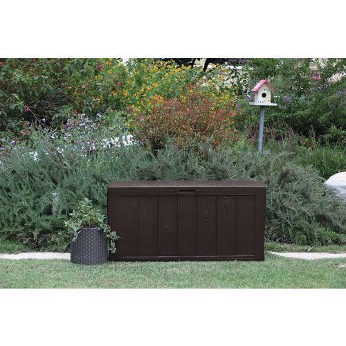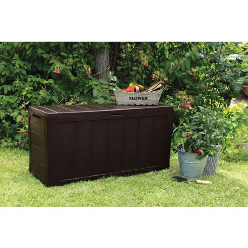 A műanyag kerti tároló alkalmas kerti szerszámok, játékok stb. tárolására. Ellenáll az időjárási hatásoknak, az UV-sugárzásnak, víznek és hónak, így a tartalmat szárazon tartja. A tároló űrtartalma 270 l, a maximális lehetséges terhelés 200 kg.