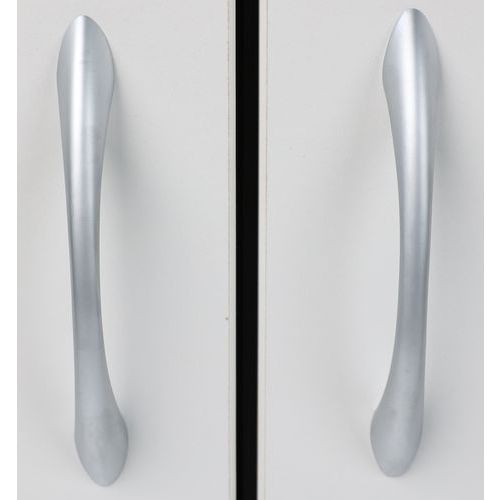 Alacsony irodai szekrény dokumentumok és mappák tárolására. Bútorlapokból készül. Egy polccal rendelkezik. A szekrény zárható. Alumínium színű fém fogantyú. Állítható lábak a szintezéshez.