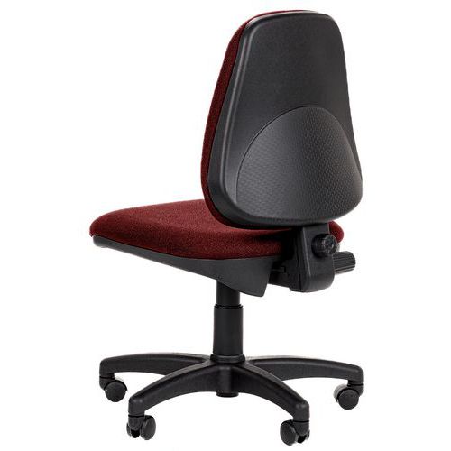 Kárpitozott irodai szék a hát és a háttámla állandó érintkezését biztosító háttámla mechanikával. A háttámla dőlésszöge rögzíthető vagy a felhasználó igényei szerinti tartós nyomás is beállítható. Az ülésmagasság gázrugóval állítható. A szék ötágú műanyag forgó csillagtalppal és puha padlófelületekre való görgőkkel rendelkezik. A szék háttámlája lehetővé teszi a mélység és a magasság állítását. Hat színváltozatból választhat. A forgószék teherbírása 110 kg.