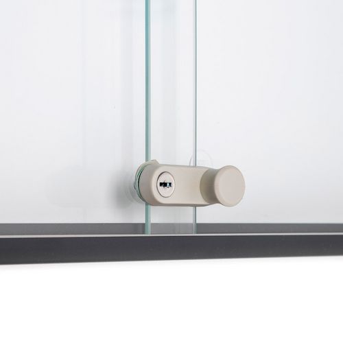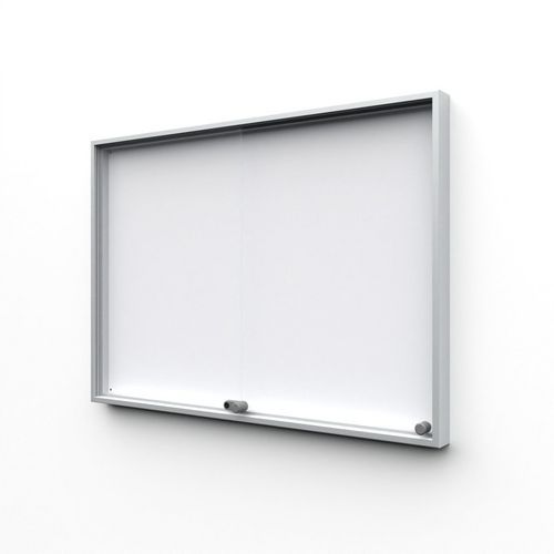 Az elegáns vitrin karcsú tolóajtókkal tiszta és áttekinthető megjelenítést biztosít. Az üveg biztonsági ajtó és az acél hátlap professzionális benyomást kelt. Íráshoz és mágnesekhez alkalmas felület, rugalmas használatot biztosít. Ideális iskolákba, tárgyalókba és nyilvános helyiségekbe.