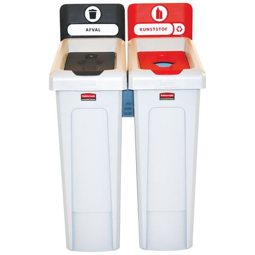 Slim Jim újrahasznosító állomás komplett 2 hulladékáramhoz. A készlet két összekapcsolható Slim Jim gyűjtőt tartalmaz, az egyik gyűjtő szürke zárt fedéllel, a másik gyűjtő kék palackfedéllel rendelkezik. A teljes készlet színes kommunikációs panelekkel és holland címkekészlettel rendelkezik.