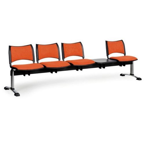 A mikroplüssel kárpitozott négy személyes pad alkalmas közterületekre és várótermekbe. A várótermi pad lábazata íves formájú, és krómozott fémből készül. A várótermi pad része a laminált fekete tároló asztalka. Öt színkivitelben áll rendelkezésre.