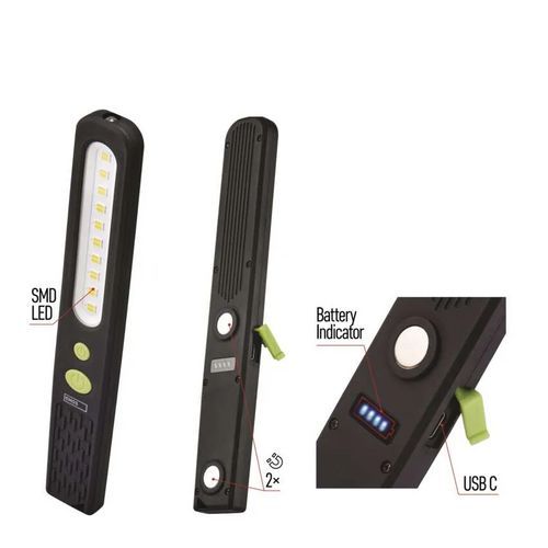 A praktikus, újratölthető zseblámpa alkalmas építkezéseken vagy műhelyben való használatra.