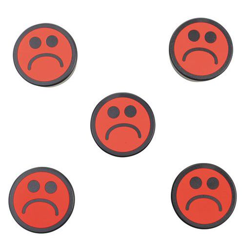 Smiley mágnesek, amelyek egy pillantással megmutatják, hogyan halad projektje. Használja a vizuális menedzsment részeként az optimális kommunikáció érdekében. A hatékony vizuális kommunikációért.
