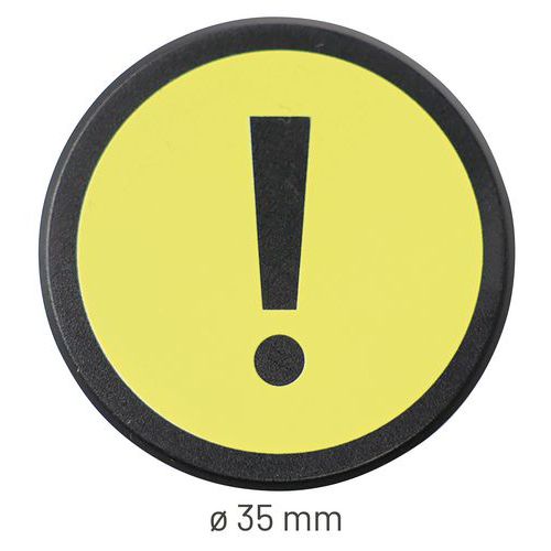 Kerek mágnes felkiáltójellel a fontos dokumentumok és információk mágnestáblán való megjelölésére. A merész színek jó láthatóságot biztosítanak. Válasszon vizuális kommunikációs módot