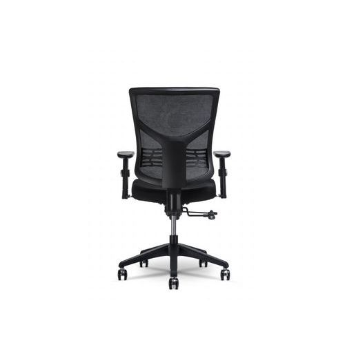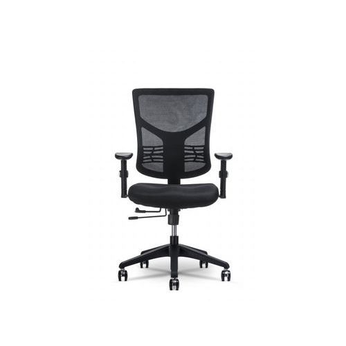 Hálós irodai szék szinkronmechanikával. Az ülőlap szövettel, a háttámla hálóval burkolt, ami biztosítja a szellőzést. Az ülőlap és a háttámla 3 pozícióban rögzíthető, a háttámla magassága 4-ben. Az ülőmagasság és mélység egyénileg szabályozható az optimális lábtartás érdekében. Saját súlynak megfelelően állítható háttámla-billentési ellentartással. Ergonomikus deréktámasszal. Állítható magasságú kartámaszokkal. Stabil ötkarú, műanyag lábkereszttel. Lágy futófelületű kerekekkel kemény padlón vagy szőnyegen való használatra. Állami laboratóriumi tanúsítvány igazolja a ČSN EN 1335–1:2020 és ČSN EN 1335–2:2020 szabványnak való megfelelést. A szinkronmechanika biztosítja, hogy az ülőlap és a háttámla állandóan érintkezzen a széket használó személy hátával. A szék ülőlapja követi a háttámla döntését, így bármilyen dőlésszög ergonomikus üléspozíciót biztosít. A mechanika mozgása a kívánt helyzetben rögzíthető. Állítható nyomóerővel és ülőlap magassággal.