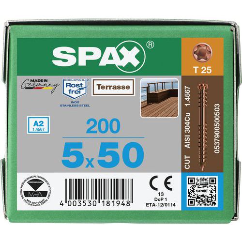 Spax TX teraszhengeres fejű facsavarok ø 5 mm, 50 mm, 200 db-os csomag. Spax TX teraszhengeres fejű facsavarok ø 5 mm, 50 mm, 200 db-os csomag.