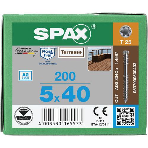 Spax TX teraszhengeres fejű facsavarok ø 5 mm, 40 mm, 200 db-os csomag. Spax TX teraszhengeres fejű facsavarok ø 5 mm, 40 mm, 200 db-os csomag.