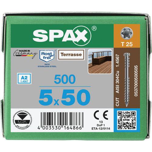 Spax TX teraszhengeres fejű facsavarok ø 5 mm, 50 mm, 500 db-os csomag. Spax TX teraszhengeres fejű facsavarok ø 5 mm, 50 mm, 500 db-os csomag.