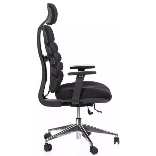A szék magasságban állítható fejtámlával rendelkezik, amely megfelelő támaszt nyújt a nyaki gerincnek.
