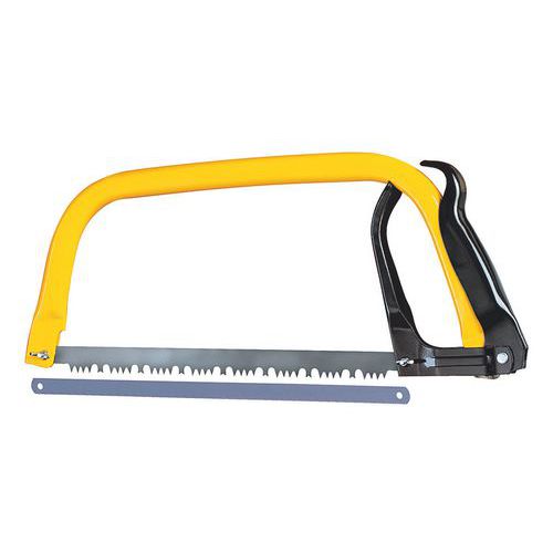 - Keretes fűrész nagy mélységű vágáshoz. A fűrészlap keretbe történő rögzítése szárnyas anyák segítségével történik, mely lehetővé teszi annak könnyű cseréjét. A markolat védi a kezet a kidörzsölődéstől és a balesetektől. A favágó lap és a vasvágó lap a csomag része.