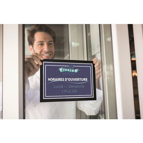 Információs dobozok dokumentumok, például árak, nyitvatartási idő, akciók stb. megjelenítéséhez. A Duraframe Sun kereteket kifejezetten napfénynek kitett üvegfelületekhez tervezték. A statikus rögzítésnek köszönhetően a keret vitrinekre, ablakokra, üvegtáblákra stb. rögzíthető. Gyors dokumentumcsere a mágneses keretnek köszönhetően. Hőálló (70 °C-ig). Akár 2 évig tartó UV-kezelés. Tükröződésgátló fóliával. A keret színe mindkét oldalon azonos. Használható álló vagy fekvő tájolásban. Gyártói garancia az ügyfélnek : 2 év