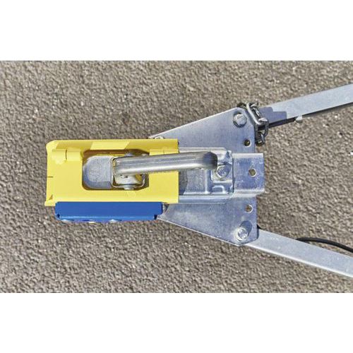 zár egyszerű és azonnali rögzítése az utánfutóhoz. Kettős használat: csatlakoztatva és leválasztva. A zár tartalmaz egy burkolatot, amely védi és tartja a lakatot.