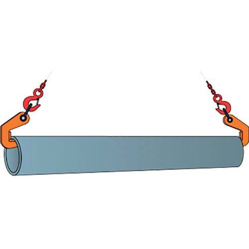 Megfogó acél- és betoncsövek vízszintes emeléséhez. A tartófelület műanyag bevonatú, hogy megóvja a terhet a sérüléstől. Párban használandó. 27 mm átmérőjű szem az emelőpánt vagy lánc rögzítéséhez (nem tartozékok).