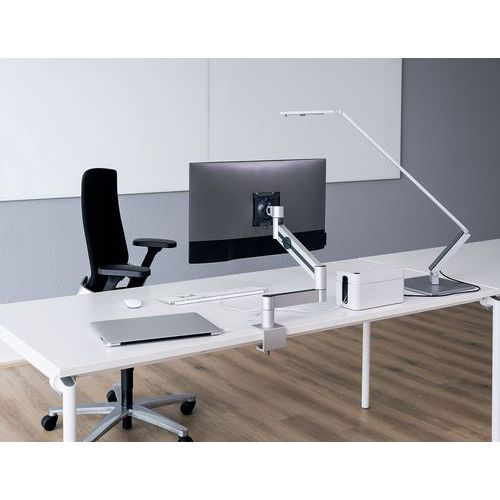 Stílusos és ergonomikus monitortartók. Kiváló tartókarok alumínium/ABS egyképernyős monitorokhoz. A monitor magassága, szöge és tájolása állítható. Clip rendszer a könnyű beállításhoz.