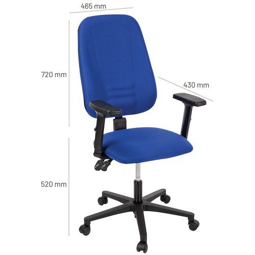 Irodai szék állítható magasságú karfával. Kényelmes ülés szinkron mechanizmussal az optimális felhasználói pozícióért.