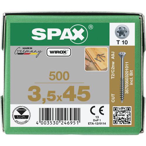 Süllyesztett fejű padlócsavarok Spax TX ø 3,5 mm, 45 mm Süllyesztett fejű padlócsavarok Spax TX ø 3,5 mm, 45 mm