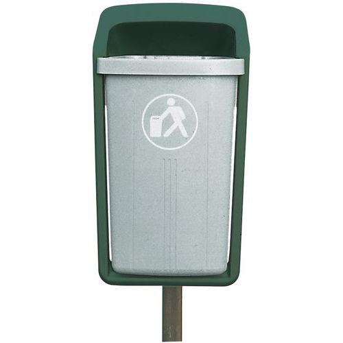 Erős, UV sugárzásnak ellenálló műanyag kosár. A zár a kosárban van elrejtve. Falra szerelhető, vagy gyűrűs bilincsekkel az oszlophoz rögzíthető (opcionális).