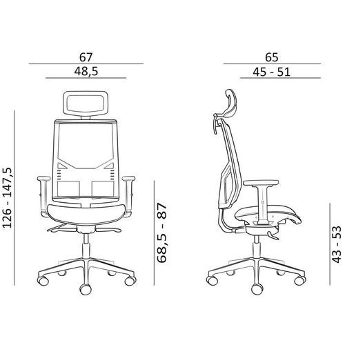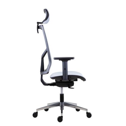 Modern Omnia irodai szék szürke kivitelben, önhordó hálószövet borítással a háttámlán és az ülésen egyaránt. A székhez tartozik egy hálós fejtámla, amelynek magassága és dőlésszöge a felhasználó igényei szerint állítható. A háttámla magassága állítható, és a választott pozícióban rögzíthető. Az ülés elülső széle jelentősen lekerekített (az elülső szélén puha poliuretán bélés található). SYN-SL szinkronmechanizmus négyszeres rögzítéssel és automatikus ellensúly-beállítással. Az ülés mélysége az ülő igényei szerint állítható. A szék minőségi alumínium kereszttartón áll, 60 mm átmérőjű kerekekkel puha felületekhez. Teherbírása 150 kg. Teherbírás (kg) : 150 kg Háttámasz