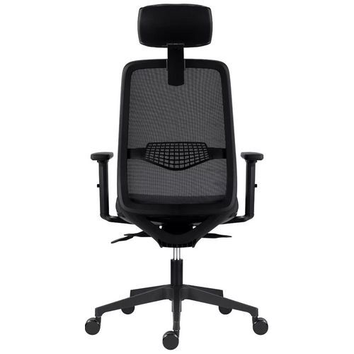 Irodai székek fekete hálós háttámlával és deréktámasztékkal. Háromkaros szinkronmechanizmus négyszeres rögzítéssel és ülésmélység-állítási lehetőséggel. Magasságban és szögben állítható, kárpitozott fejtámla. A fekete nylon alap Ø 60 mm-es görgőkkel van ellátva, puha felületekhez. A Tullio irodai szék teherbírása 150 kg. Három színváltozatban kapható. A szék karfa nélkül kerül forgalomba – külön megvásárolható.