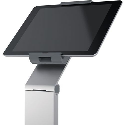 Stílusos és professzionális szabadon álló táblagépállvány. Optimális védelem gumi tartófelülettel. Hátsó kábelbevezetés, teljes magasságban állítható. 360°-os elforgatás fekvő vagy portré használathoz. Rendkívül stabil állvány nagy, kiváló minőségű alumínium talppal. Biztonság lopás ellen.
