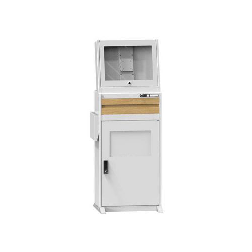 A számítógépes terminálok üvegajtós monitorszekrénnyel és a felső részen állítható konzollal vannak felszerelve. Ez lehetővé teszi érintőképernyős monitor és All In One PC használatát. Az alsó részben található egy fa fiók a billentyűzetnek, dupla ajtók és egy polc. A termék egykulcsos rendszert használ.