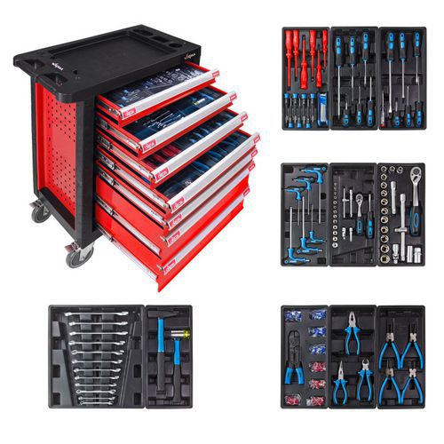 | Termék neve | Szerelőkocsi szerszámokkal, 262 db, 98 x 78 x 46 cm |