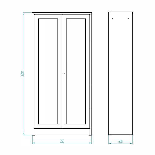 A négy magasságban állítható polccal és üvegajtókkal ellátott fémszekrény minden olyan helyre alkalmas, ahol gyorsan át kell tekinteni a szekrény tartalmát.