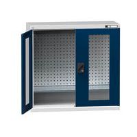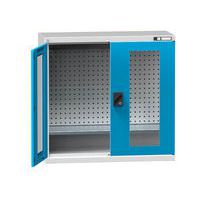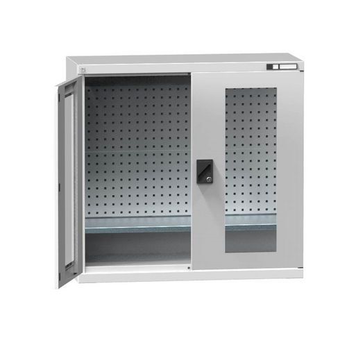 SK szárnyasajtókkal ellátott szekrény 180°-os nyitásszöggel. Stabil acéllemezből készült szerkezet. Az üvegajtók edzett biztonsági üveget használnak. A polc magassága 25 mm-es lépésekben állítható.