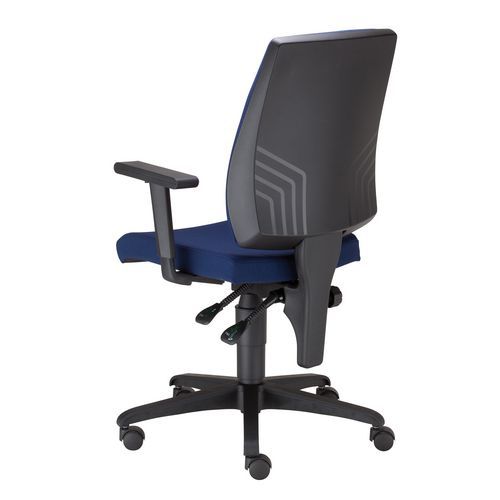 Kárpitozott irodai székek ergonomikusan kialakított háttámlával, állandó érintkezéssel, valamint állítható háttámla magassággal és dőlésszöggel.