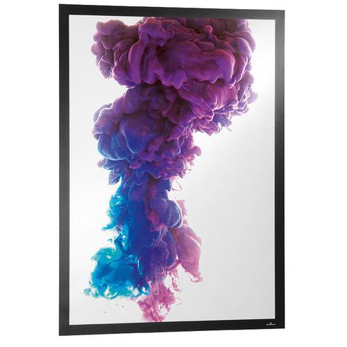 A Duraframe® poszterkeret könnyen használható, csak nyissa ki az oldalsó keretet, helyezze be a posztert, és a mágnescsíkoknak köszönhetően gyorsan frissítheti is.