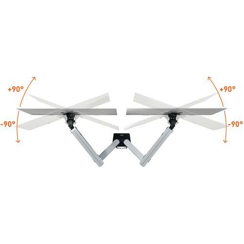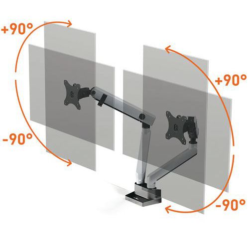 Monitortartók rugalmas karral és dupla rögzítőrendszerrel. Ergonomikus munka a képernyő magasságának, dőlésszögének és tájolásának egyedi és egyszerű beállításának köszönhetően. 90°-os képernyőtájolás álló vagy fekvő használathoz (pivot). A gázrugós rendszernek köszönhetően a képernyő helyzete egyszerűen állítható. 17-32 hüvelykes (43,2-81,3 cm) és legfeljebb 8 kg-os monitorokhoz.