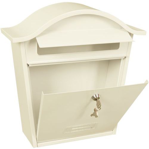 Design falra szerelhető levélszekrény porszórtan horganyzott acélból, hengerzárral és kis névtábla tartóval. A bejárati nyílás (23x4cm) a fedlap mögött található.