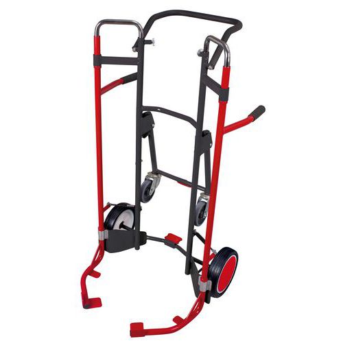 Gumiabroncstartó támasztó kerekekkel. Teleszkópos hosszabbító 4 lépésben bővíthető. Formázott tengely és emelőkaros emelőrendszer. 540 - 820 mm átmérőjű gumiabroncsokhoz. A fogantyú felülete puha műanyaggal van bevonva. Gumiabroncs rögzítés rugóval. Gumiabroncsok acélfelnire vagy tömörgumi kerekek műanyag felnire, precíziós golyóscsapágyakkal és műanyag kerékburkolattal. Keret felületkezelés porfestékkel RAL skála szerint. Ütés- és karcálló.
