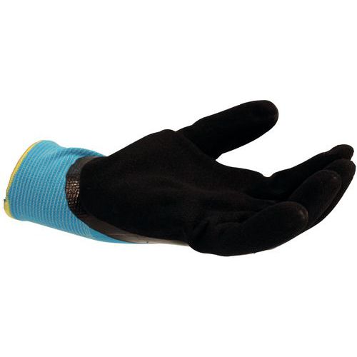 Jobb tapadás az izomfáradtság csökkentése érdekében. A bevonat 5-ször tovább bírja, mint a piaci szabványok. Szárazon tart nedves környezetben. Hosszú élettartam: garantált működés 5 mosás után. Kesztyű szigetelt béléssel. Kötött csukló. Az alábbi munkák elvégzésére használható: Szállítás, logisztika Rendelések előkészítése Karbantartás nedves vagy hideg környezetben Építőanyag-manipuláció az építőiparban Közszervezetek Hulladékgyűjtés és -feldolgozás Köztestületek (vendéglátás) Közszervezetek (zöldek karbantartása) Közszervezetek (utak karbantartása).