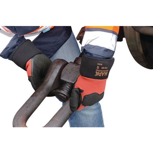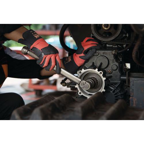 Kezelési kesztyűk speciális technológiával, amely kiváló tapadást biztosít. Az egyes területek megerősítve védik és elnyelik az ütéseket. Zsír- és olajállóság a bőr jobb védelméért. A bevonat segít a kesztyű hosszú távú tartósságának biztosításában. Megerősített területek: hüvelykujj felett, bütykök alatt, ujjak és tenyér alatt. Az alábbi munkákhoz használható: Ipari és gépkarbantartás Ipari berendezések telepítése Nehéz alkatrészek összeszerelése és megmunkálása Vastag lemezek manipulálása Zsíros mechanikai alkatrészek manipulálása Gyártás szerszámgépekkel Nehéz alkatrészek megmunkálása Gyártás szerszámgépekkel Fémbevonat Termékek manipulálása emelvényeken, tereken, aszfalton stb. Rakodógépek kezelése Rendelések elkészítése