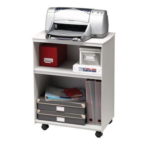 - Műanyag irodai nyomtatókocsi két színváltozatban, két rekesszel.