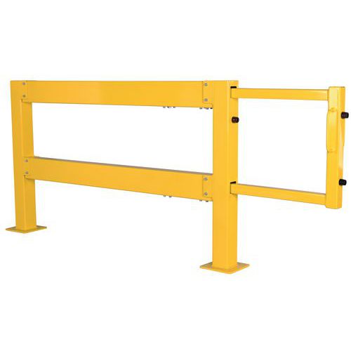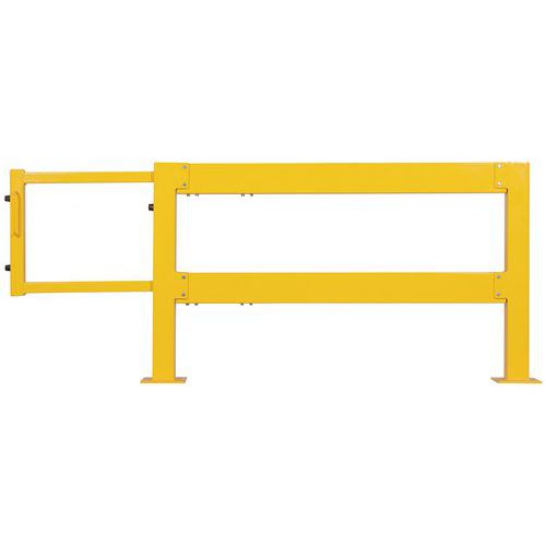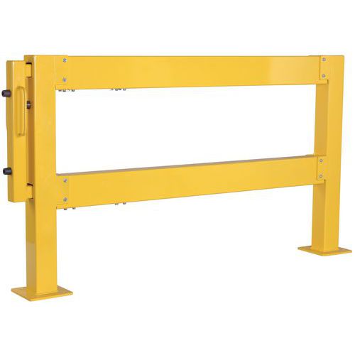 Moduláris rendszer raktárterületek védelmére. Fogantyúkkal ellátott tolóajtó a könnyű és biztonságos nyitáshoz és záráshoz. Jó láthatóság a figyelmeztető sárga színnek köszönhetően. Könnyű felszerelés a talplemezre 4 db 200 x 200 mm méretű furattal.