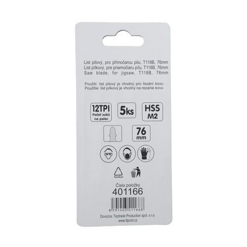 | Termék neve | TOPTRADE fűrészlap dekopírfűrészhez, T118B, 76 mm, fém, 5 db-os kiszerelés |