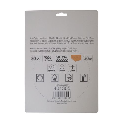 Termék neve TOPTRADE fűrésztárcsa, fához, szinterezett karbid élekkel, 24 fog, 160 x 2,2 x 20/16 mm