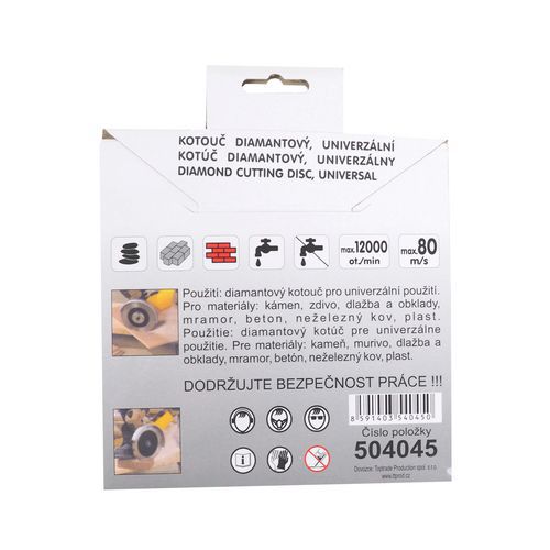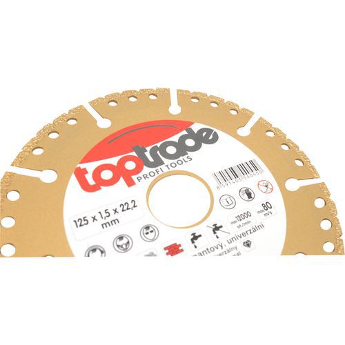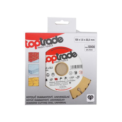 | Termék neve | TOPTRADE gyémánt vágótárcsa, univerzális, 125 x 1,5 x 22,2 mm |