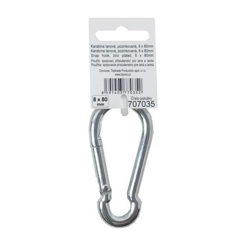 | Termék neve | TOPTRADE karabiner kötélhez, horganyzott, normál, 8 x 80 mm |