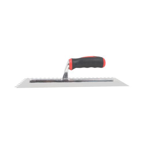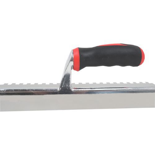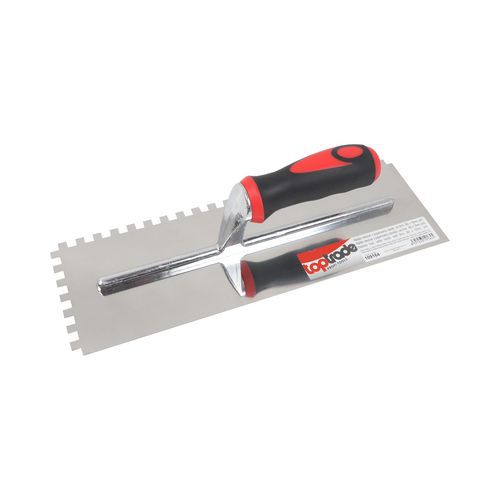 TOPTRADE rozsdamentes acél simító, gumírozott nyéllel, 8 mm-es fogakkal, 360 x 120 mm, profi