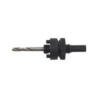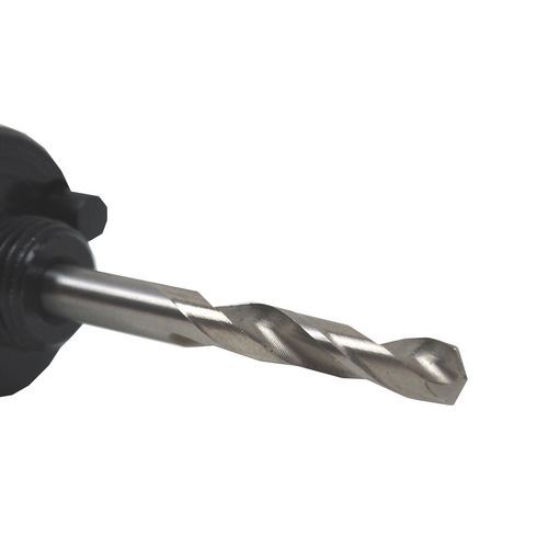 Tartó központosító fúrószárral 32 – 83 mm átmérőjű körkivágókhoz. 4341 HSS anyagból készült - rozsdamentes acélhoz nem használható.