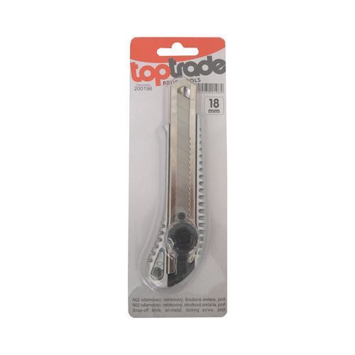 TOPTRADE vágókés tördelhető pengével, teljesen fém, csavaros retesszel, 18 mm, profi