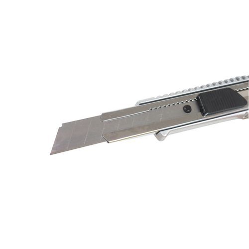 TOPTRADE vágókés tördelhető pengével, teljesen fém, értékesítői kartonban, 18 mm, 24 db-os kiszerelés TOPTRADE vágókés tördelhető pengével, teljesen fém, értékesítői kartonban, 18 mm, 24 db-os kiszerelés