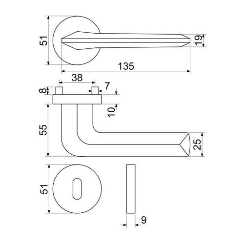A felhasznált anyagok nagyfokú szilárdsággal és kopásállósággal rendelkeznek. Pontosan megmunkált élek. Acél rozetta szerkezet FIX IN rendszerben - a fogantyúk és a rozetták stabil csavarozása az ajtón keresztül. A kiálló anyák és vezető csavarok megakadályozzák a rozetta elfordulását.