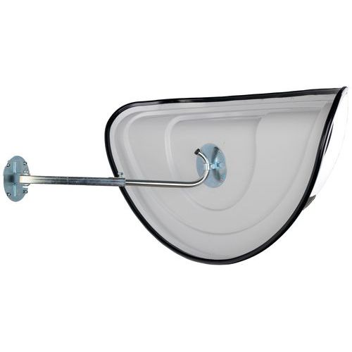 A gyártóterületeken végzett műveletek megfigyelésére ideális ipari tükör. Kiváló, torzításmentes tükörkép a hátlapjára rögzített fém lemeznek köszönhetően. Akril alapanyaga 70%-kal ütésállóbb, mint az üveg. Széles, 180°-os látómező a jobb áttekintés érdekében. Könnyű felszerelés: a készlet tartalmazza a fali konzolt.