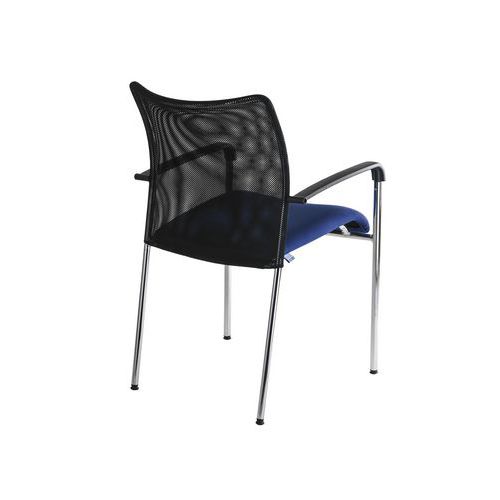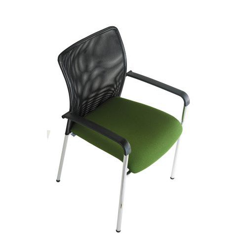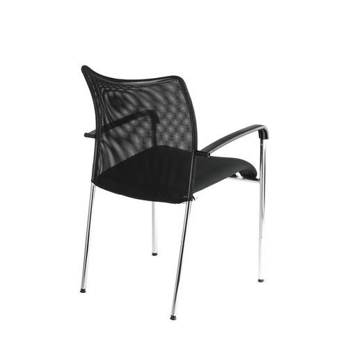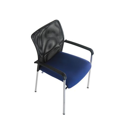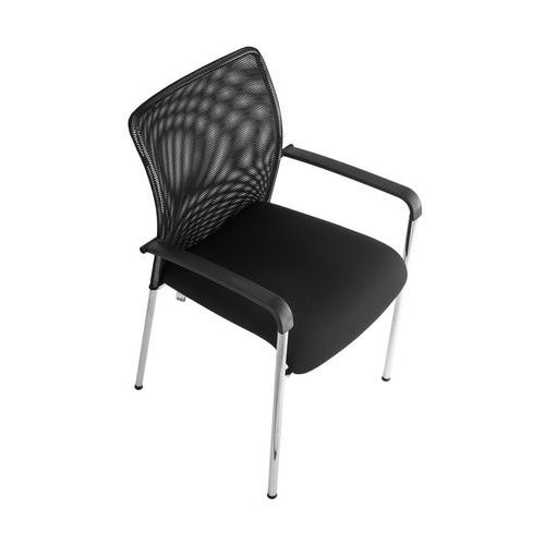 Trinity modern konferenciaszék légáteresztő hálós háttámlával és kárpitozott ülőlappal. Használható irodahelyiségekben, hivatalokban, iskolai folyosón, dolgozószobában vagy bármilyen váróteremben. Krómozott kivitelű stabil hegesztett talppal. Fekete műanyag karfák a fokozott kényelem érdekében. Ötösével rakásolva könnyedén hordozható és tárolható. Rakásolható